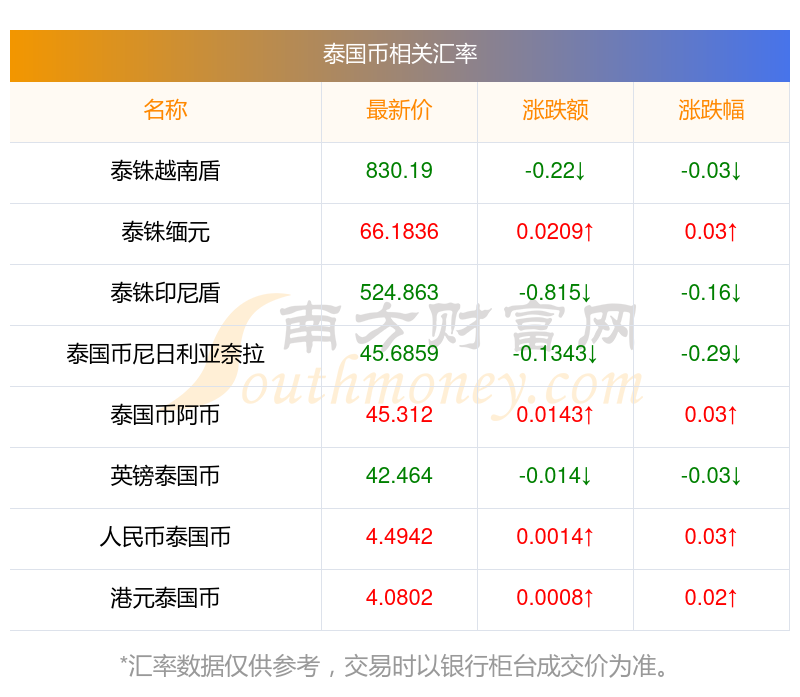 南方財富網為您提供泰國幣對福林匯率最新價格詳情。