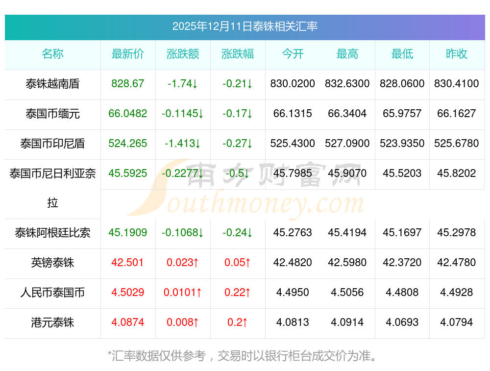 根據2025年12月11日匯率計算,THB兌換DKK匯率最新價0.200900:今開價0.2012,昨收價0.2013,最高價0.2016,最低價0.2006。