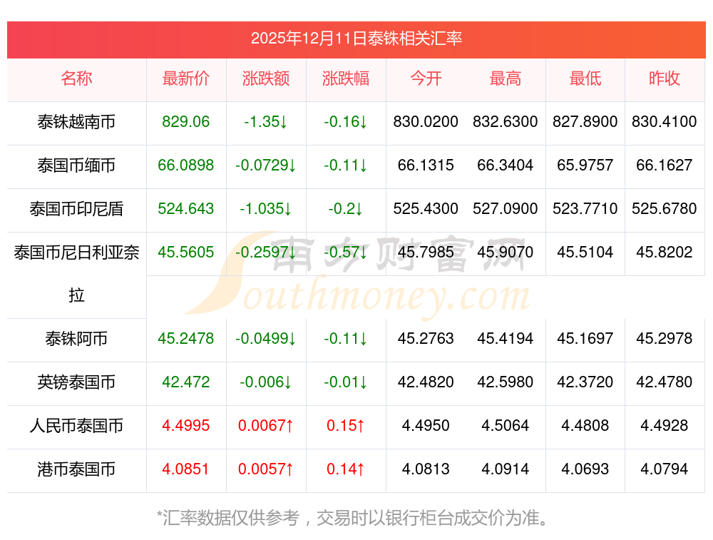 2025年12月11日泰銖相關匯率查詢