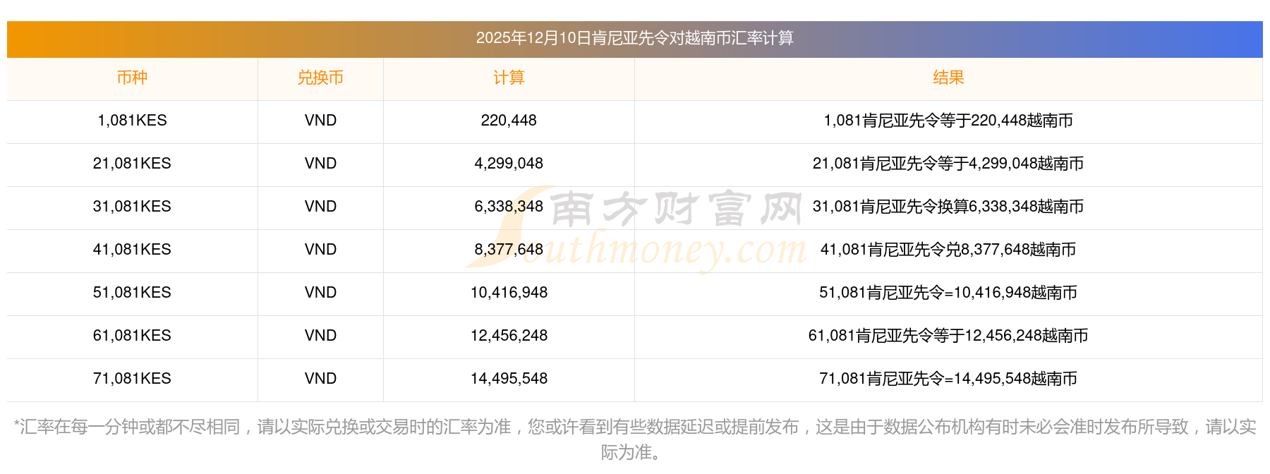 南方財富網為您提供肯尼亞先令對越南幣匯率最新價格詳情。