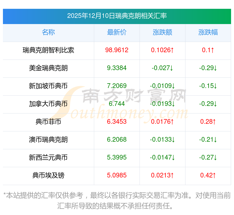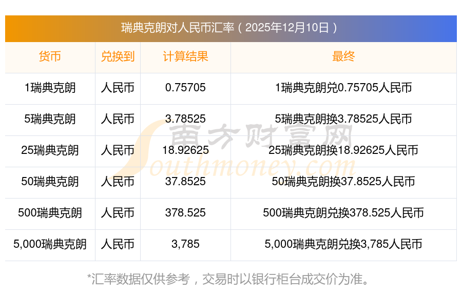 南方財富網為您提供瑞典克朗對人民幣匯率最新價格詳情。