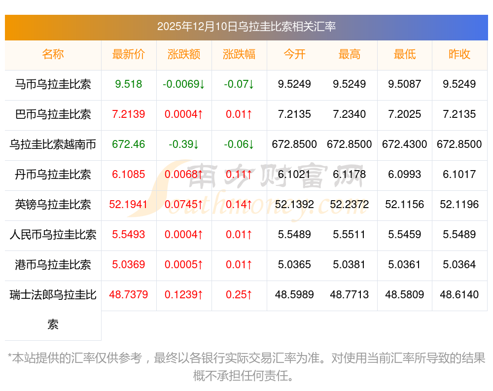 南方財富網為您提供烏拉圭比索對越南幣匯率最新價格詳情。