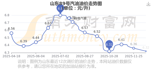 油價調整最新消息:下一輪油價調整時間12月22日24時。12月14日,山東汽油、柴油每升最新價格為:調整時間為12月9日,92號汽油為6.81元,跌了0.04元,跌幅達0.58%;95號汽油為7.3元,跌了0.05元,跌幅達0.68%;89號汽油為6.32元,跌了0.04元,跌幅達0.63%;0號柴油為6.4元,跌了0.05元,跌幅達0.78%。